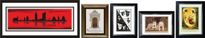 Die Auslieferung erfolgt gerahmt in Standardrahmen (siehe nebenstehende Unterseite). Andere Rahmenwünsche auf Anfrage.