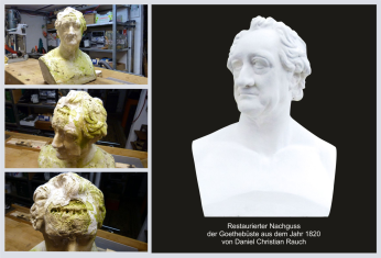 Rechts: Restaurierter Nachguss der Goethebüste aus dem Jahr 1820 von Daniel Christian Rauch.