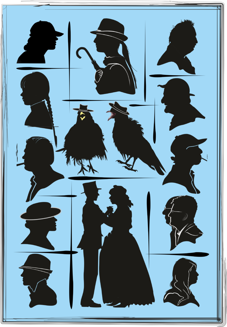 Schattenbilder, die hier zu sehen sind, entstanden ausschließlich am Computer. Dahinter steht jeweils eine authentische Persönlichkeit. Für die Erarbeitung des Schattenbildes stand, anstelle des Silhouettentuhls aus der Zeit des Rokoko, ein Foto zur Verfügung, das schöpferisch berücksichtigt wurde. Das Foto ist nicht Bestandteil der Grafik. Für Außenstehende ist und bleibt die Person auf Wunsch stets anonym. Ähnlichkeiten mit lebenden Personen sind rein zufällig.