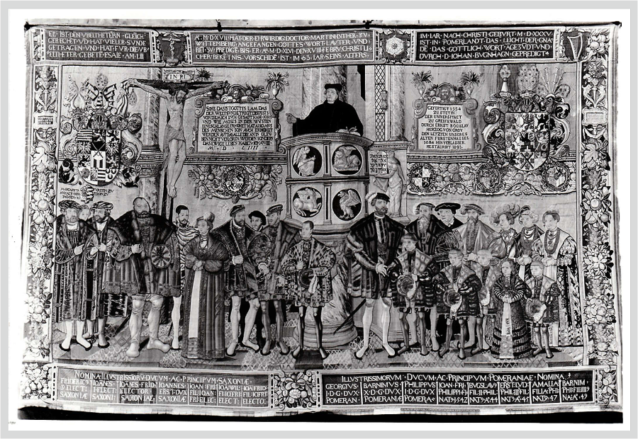 Als man nach monatelanger mühevoller Teppichwirkerei im Auftrag des Herzogs Philipp I. von Pommern-Wolgast das Kunstwerk, nach Plänen von Lucas Cranach d.J. und u. a. auch mit Entwürfen seines Vaters Lucas Cranach d. Ä., gestaltet und später nach dem Stifter Herzog Bogislaw von Croy als „Croyteppich“ benannt, der herzoglichen Familie feierlich vorstellte, waren die auf dem Teppich Abgebildeten entsetzt, weil es ihnen in jeder Hinsicht an Schönheit zu fehlen schien. Sie waren gelähmt nicht fähig, ein Urteil zu fällen. Man zog sich zurück und beriet, ob man sich mit diesem Affront arrangieren könne.