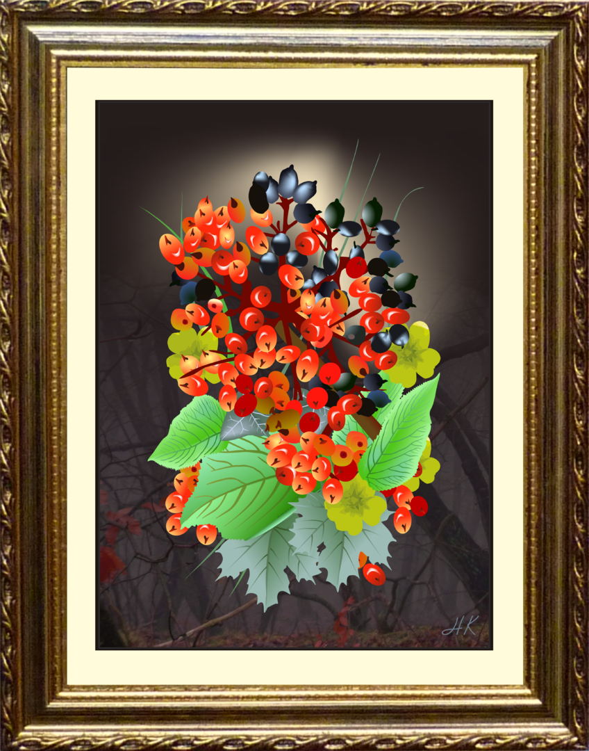 Stillleben mit Beeren (Hartriegelgewächs)